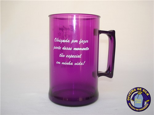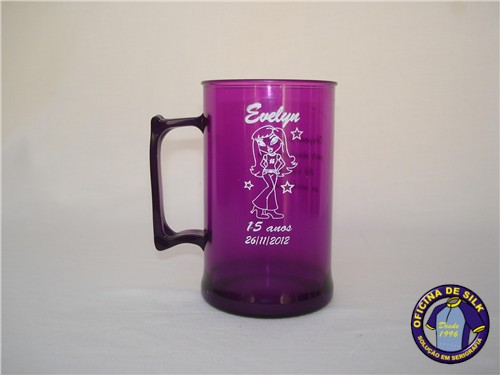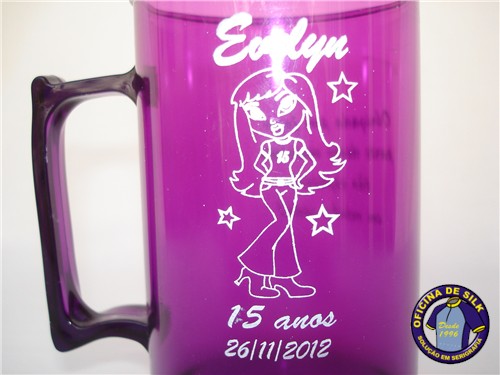 Capacidade: 300ml Impressão em Silk Screen - 1 cor - Consultar valores para mais de 1 corCor: roxa - Outras cores verificar disponibilidadeIdeal para festas de 15 anos, bailes, formaturas, festas de aniversário e eventos em geral.Consulte prazo de produção e entrega.